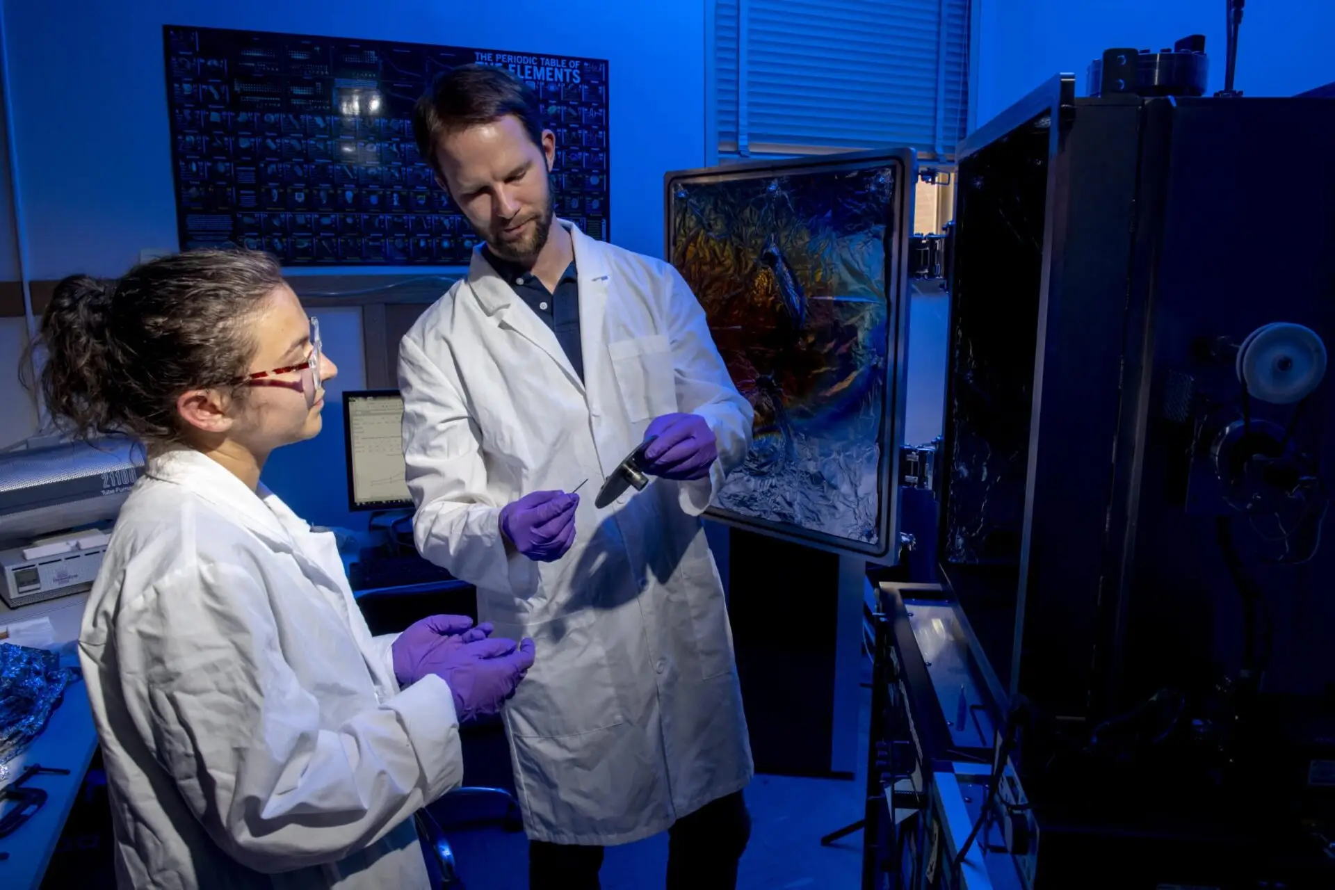 Electrochemical analysis capabilities include a Princeton Applied Research PARSTAT-4000, a Gamry 1000-E, and Admiral Instruments Squidstat Plus and Squidstat Penta potentiostat/galvanostats; all are compatible with three available Ametek sample holders for solid or liquid specimens. Mechanical characterization can be carried out on an Instron 8874 multi-axial test rig equipped with a biaxial load cell (±1kN axial & ±25Nm torsional); Instron 8802 multi-axial test rig equipped with a biaxial load cell (±250kN axial & ±100kNm torsional), and an Advanced Video Extensometer (AVE); and TA Instruments Discovery HR-2 Rheometer with tension testing – ETC heater. Thermal analysis equipment includes TA Instruments DSC-250 Differential Scanning Calorimeter and TGA-550 Thermogravimetric Analyzer.